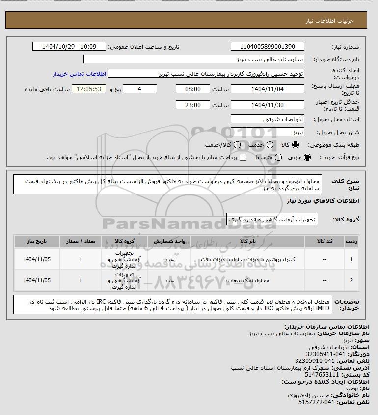نام دستگاه خریدار:بیمارستان عالی نسب تبریز