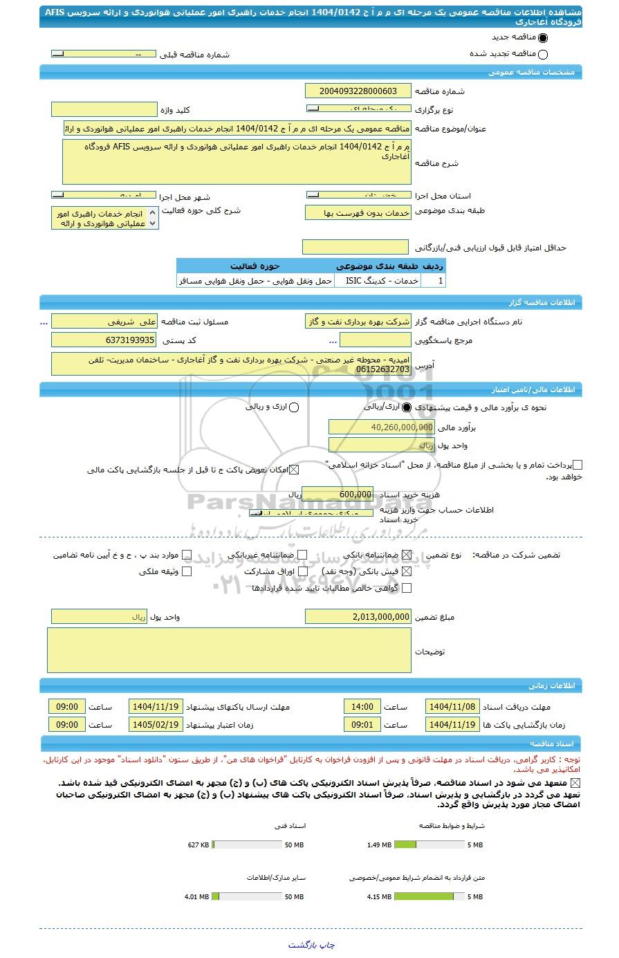 | شماره مناقصه | 2004093228000603 | ||||||||