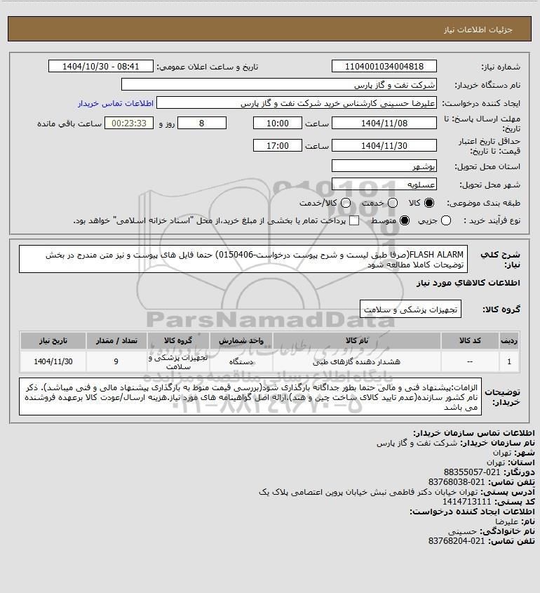 استعلام FLASH ALARM(صرفا طبق لیست و شرح پیوست درخواست-0150406) حتما فایل های پیوست و نیز متن مندرج در بخش توضیحات کاملا مطالعه شود, استعلام FLASH ALARM(صرفا طبق لیست و شرح پیوست درخواست-0150406) حتما فایل های پیوست و نیز متن مندرج در بخش توضیحات کاملا مطالعه شود