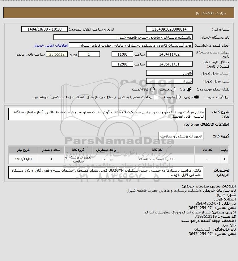 نام دستگاه خریدار:دانشکده پرستاری و مامایی حضرت فاطمه شیراز