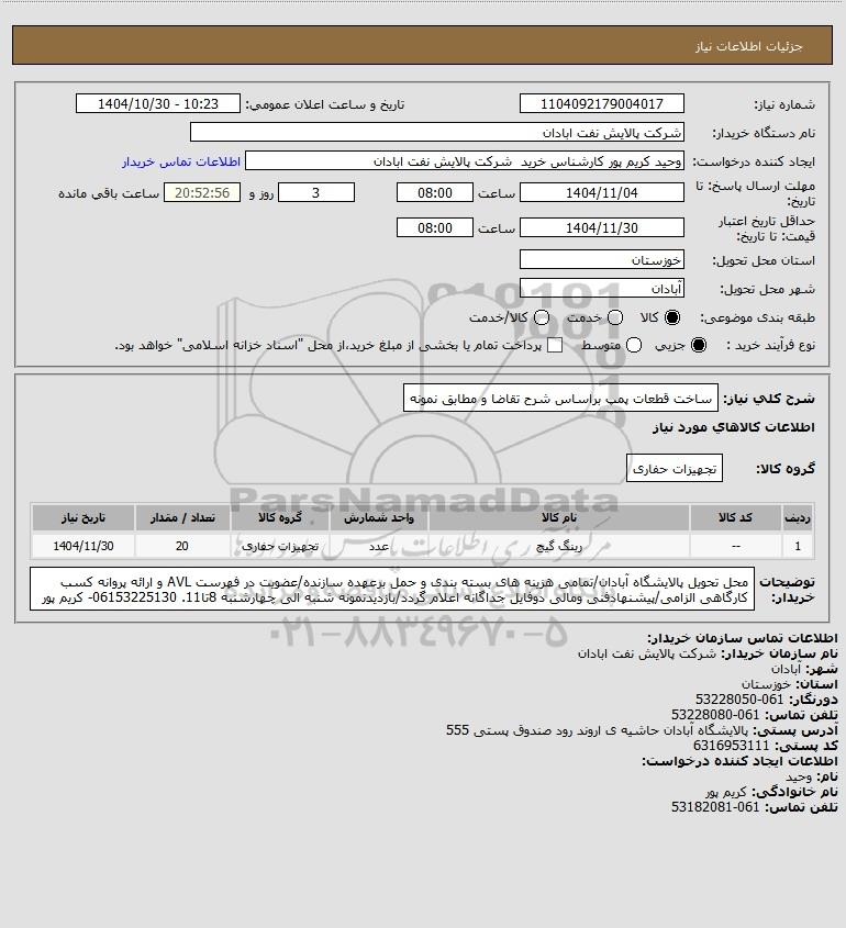 | 1 | -- | رینگ گیج | عدد | تجهیزات حفاری | 20 | 1404/11/30 |