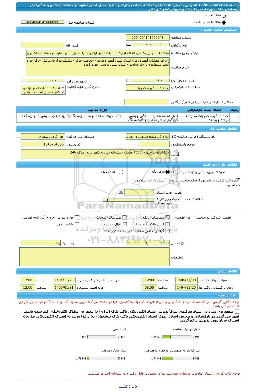| مبلغ تضمین | 4,000,000,000 | واحد پول | ریال |