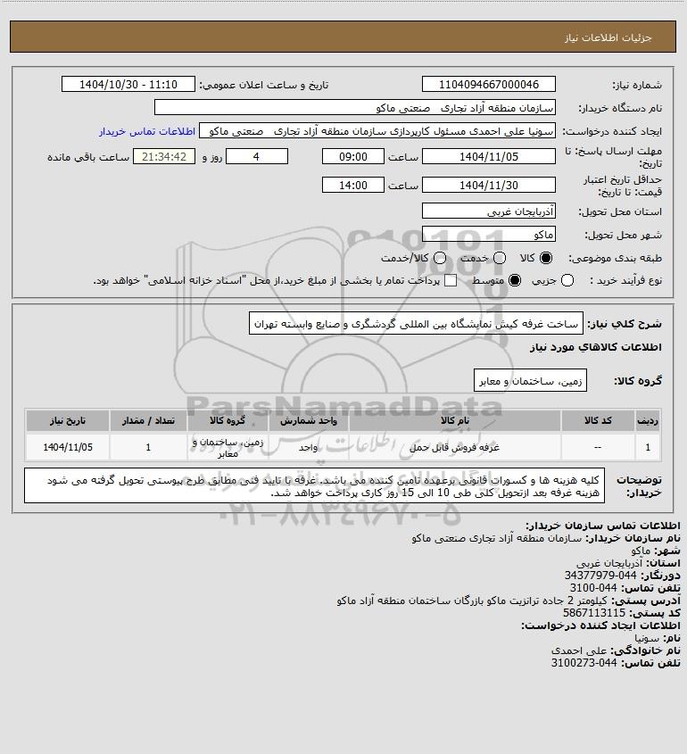 نام دستگاه خریدار:سازمان منطقه آزاد تجاری صنعتی ماکو