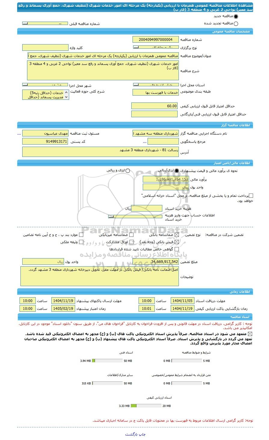 | نام دستگاه اجرایی مناقصه گزار | شهرداری منطقه سه مشهد استان خراسان رضوی | مسئول ثبت مناقصه | مهدی عباسیون |