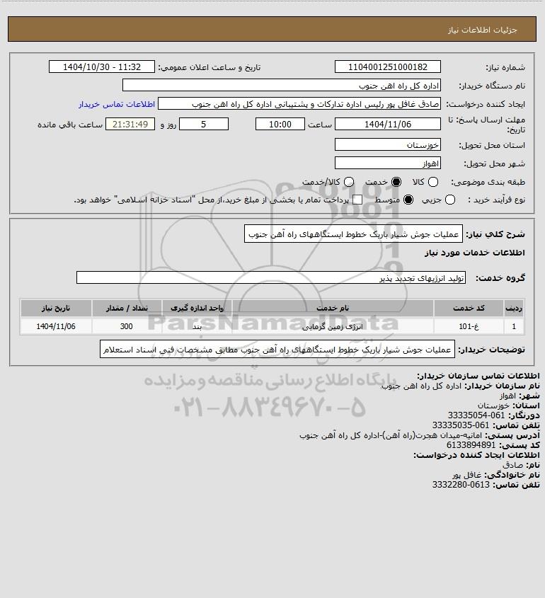 نام دستگاه خریدار:اداره کل راه اهن جنوب