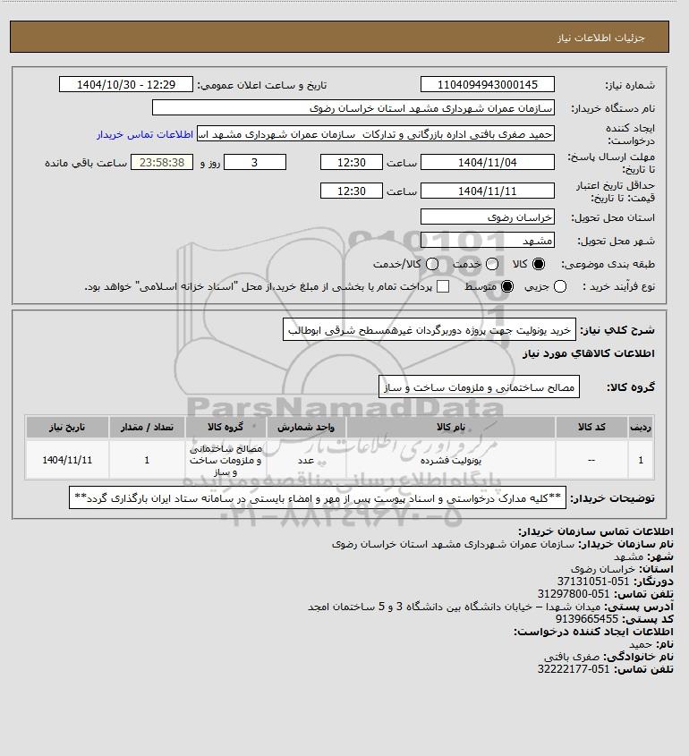 نام دستگاه خریدار:سازمان عمران شهرداری مشهد استان خراسان رضوی