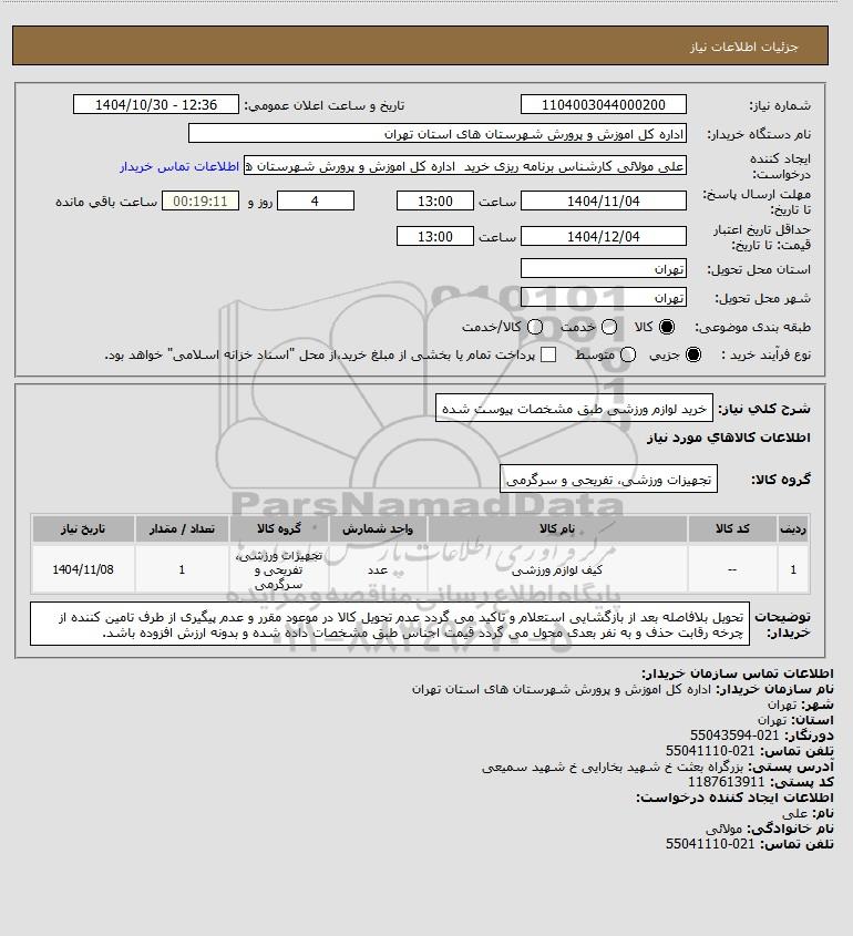 نام دستگاه خریدار:اداره کل اموزش و پرورش شهرستان های استان تهران