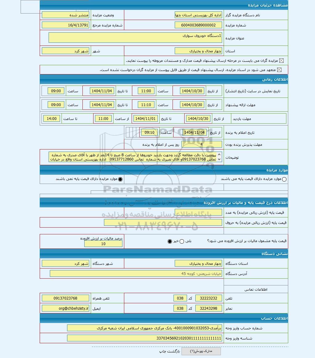 مزایده 1دستگاه خودروی سواری, مزایده ، 1دستگاه خودروی سواری