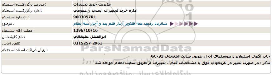 اداره برگزارکننده استعلام: اداره خرید تجهیزات ایمنی و عمومی