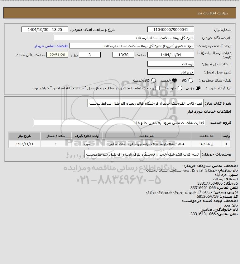 نام دستگاه خریدار:اداره کل بیمه سلامت استان لرستان