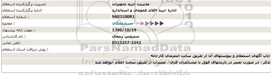 اداره برگزارکننده استعلام:     اداره خرید اقلام عمومی و استاندارد