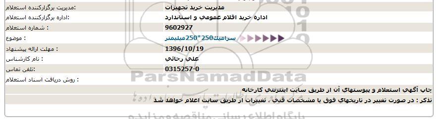 اداره برگزارکننده استعلام: اداره خرید اقلام عمومی و استاندارد