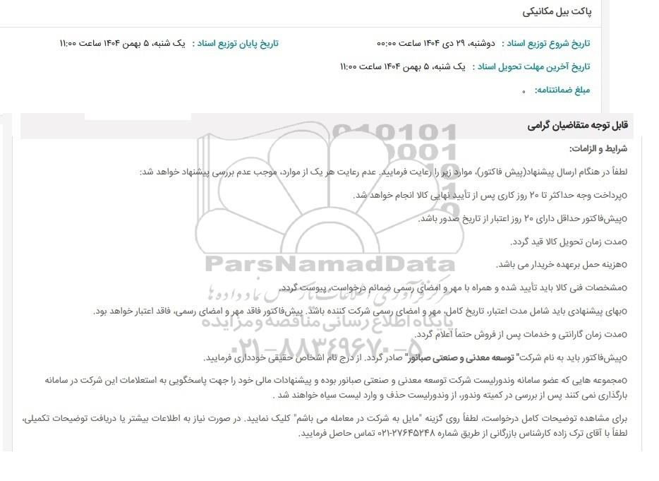 برای شرکت در مناقصه حتما از تصویر آگهی در سایت پارس نماد داده ها استفاده نمایید