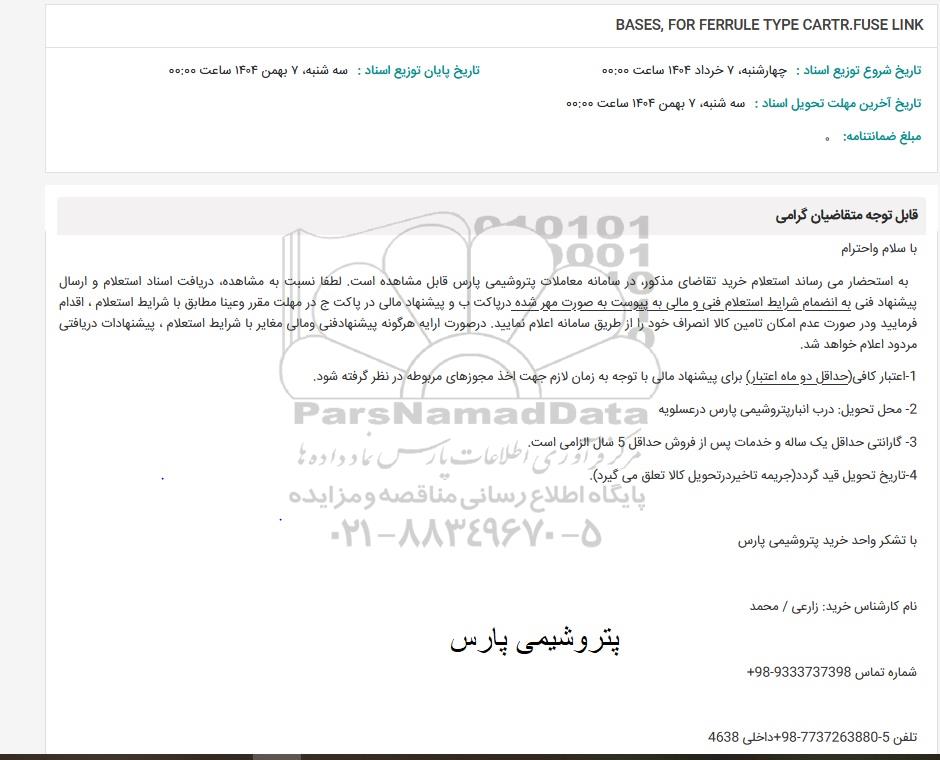 استعلام BASES, FOR FERRULE TYPE CARTR.FUSE LINK, استعلام BASES, FOR FERRULE TYPE CARTR.FUSE LINK