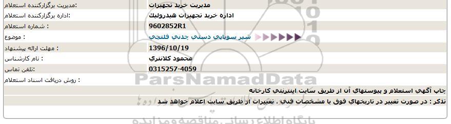 اداره برگزارکننده استعلام:     اداره خرید تجهیزات هیدرولیک