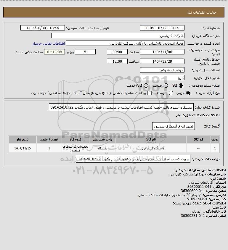 نام دستگاه خریدار:شرکت کلرپارس