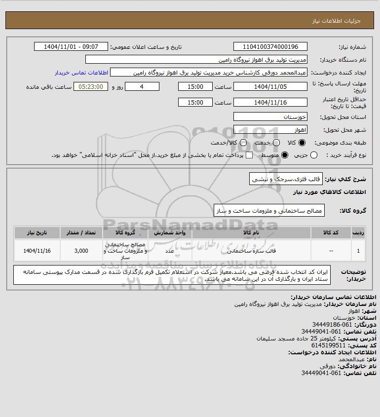 نام دستگاه خریدار:مدیریت تولید برق اهواز نیروگاه رامین