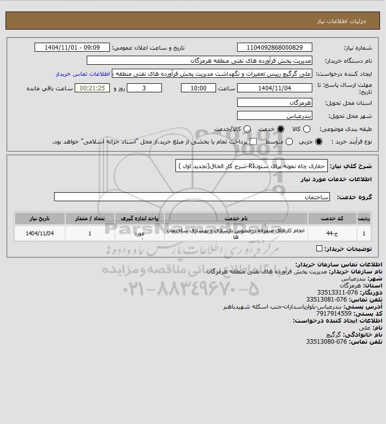 شرح کلی نیاز: حفاری چاه نمونه برای ستونRI-شرح کار الحاق(تجدید اول )