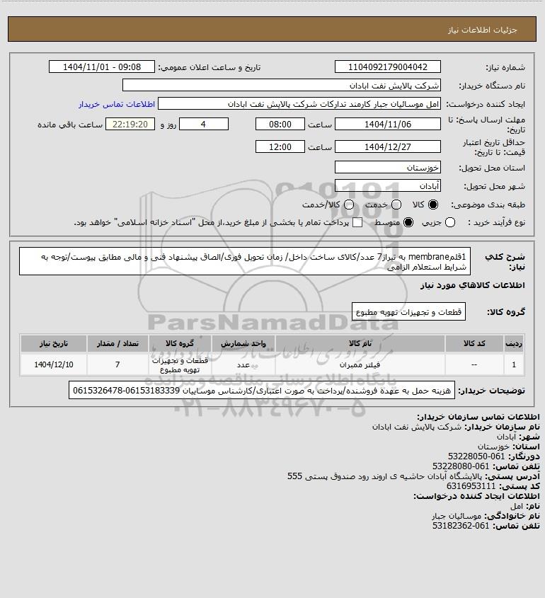 نام دستگاه خریدار:شرکت پالایش نفت ابادان