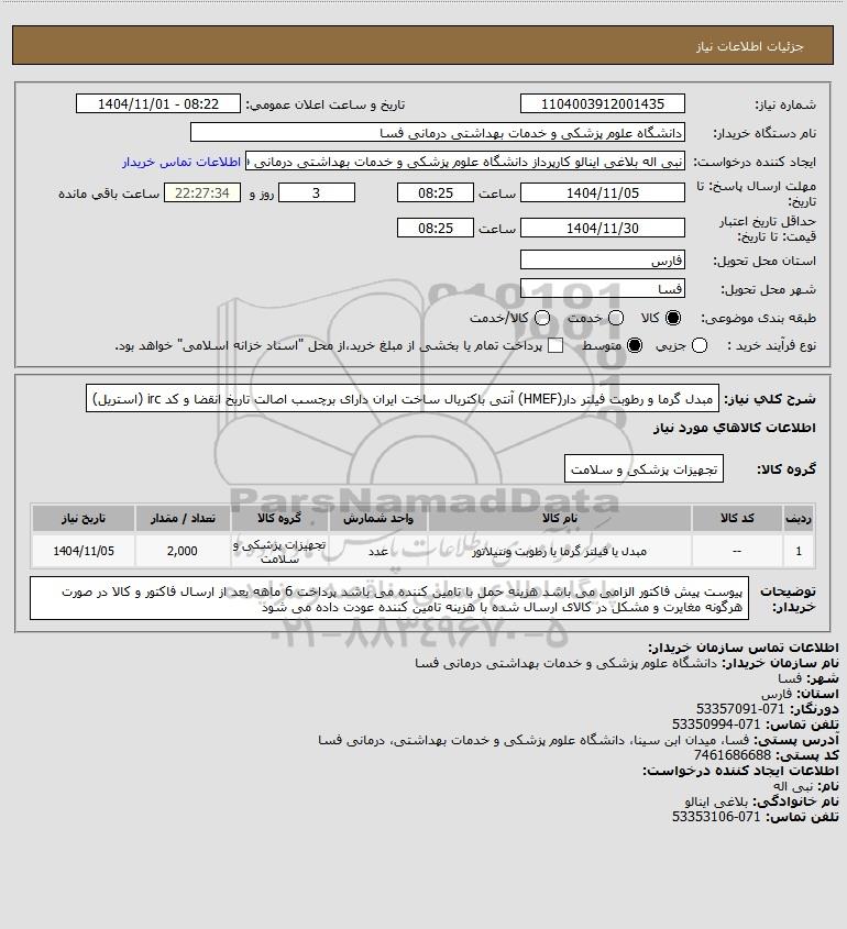نام دستگاه خریدار:دانشگاه علوم پزشکی و خدمات بهداشتی درمانی فسا