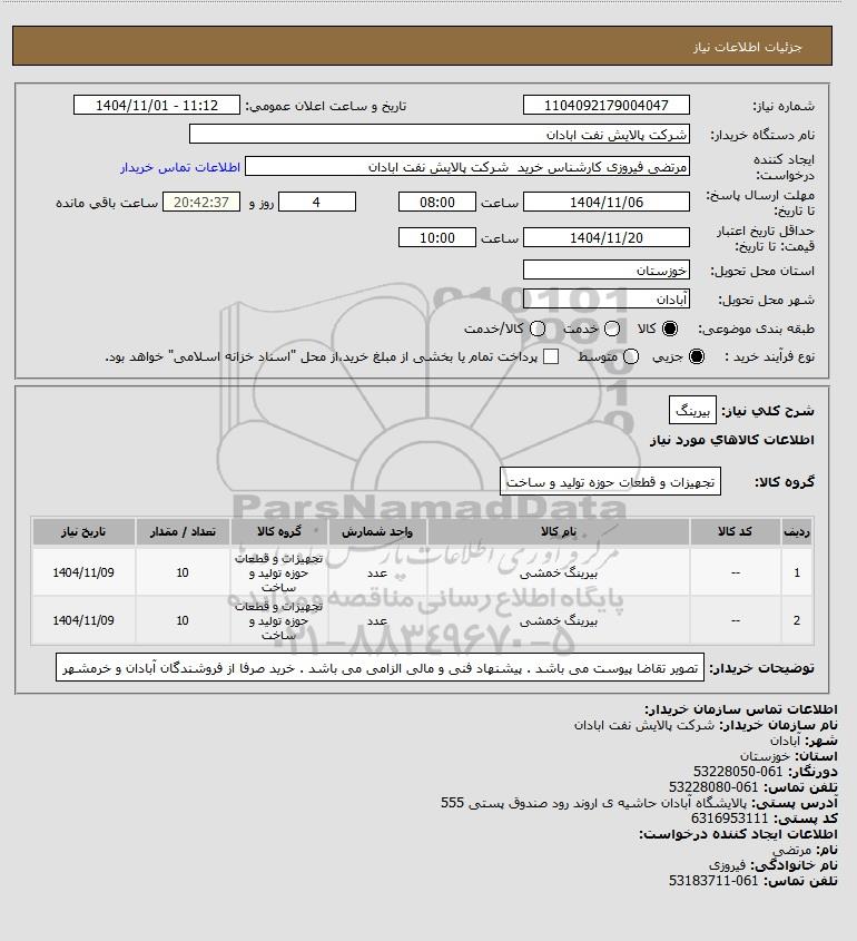 نام دستگاه خریدار:شرکت پالایش نفت ابادان