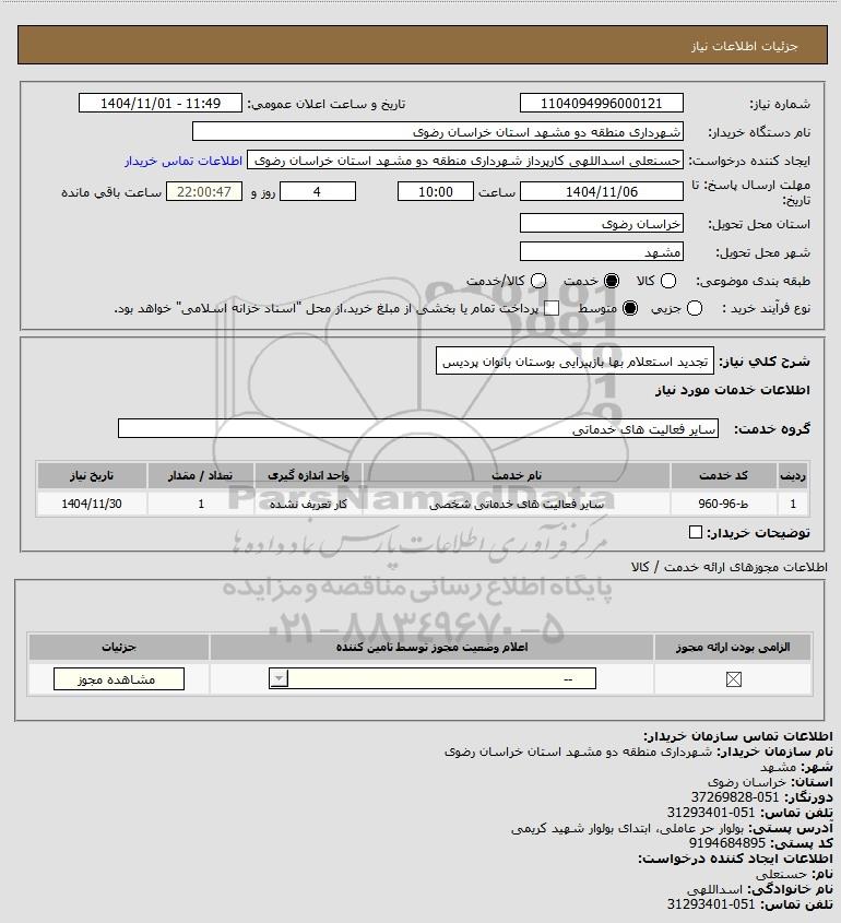 استعلام تجدید استعلام بها بازپیرایی بوستان بانوان پردیس, استعلام تجدید استعلام بها بازپیرایی بوستان بانوان پردیس