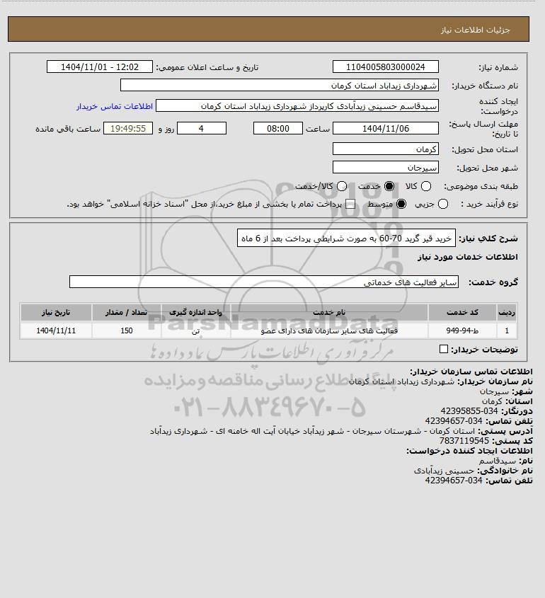 شرح کلی نیاز: خرید قیر گرید 70-60 به صورت شرایطی پرداخت بعد از 6 ماه
