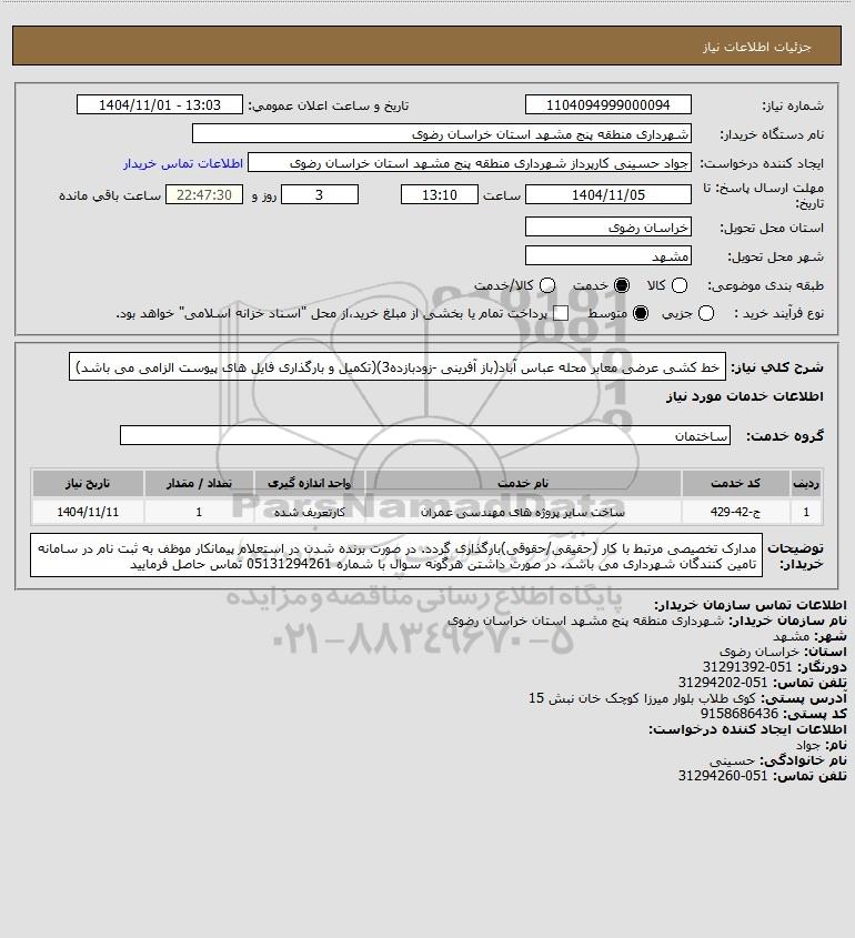 نام دستگاه خریدار:شهرداری منطقه پنج مشهد استان خراسان رضوی