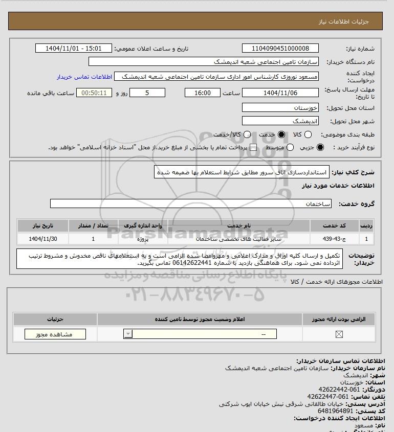 نام دستگاه خریدار:سازمان تامین اجتماعی شعبه اندیمشک