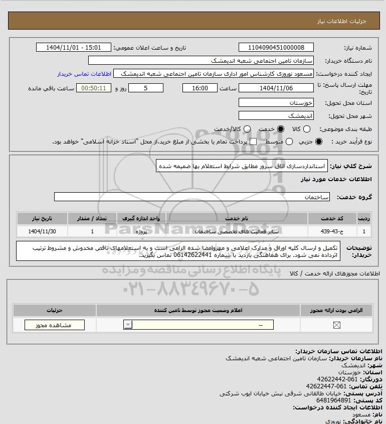 نام دستگاه خریدار:سازمان تامین اجتماعی شعبه اندیمشک