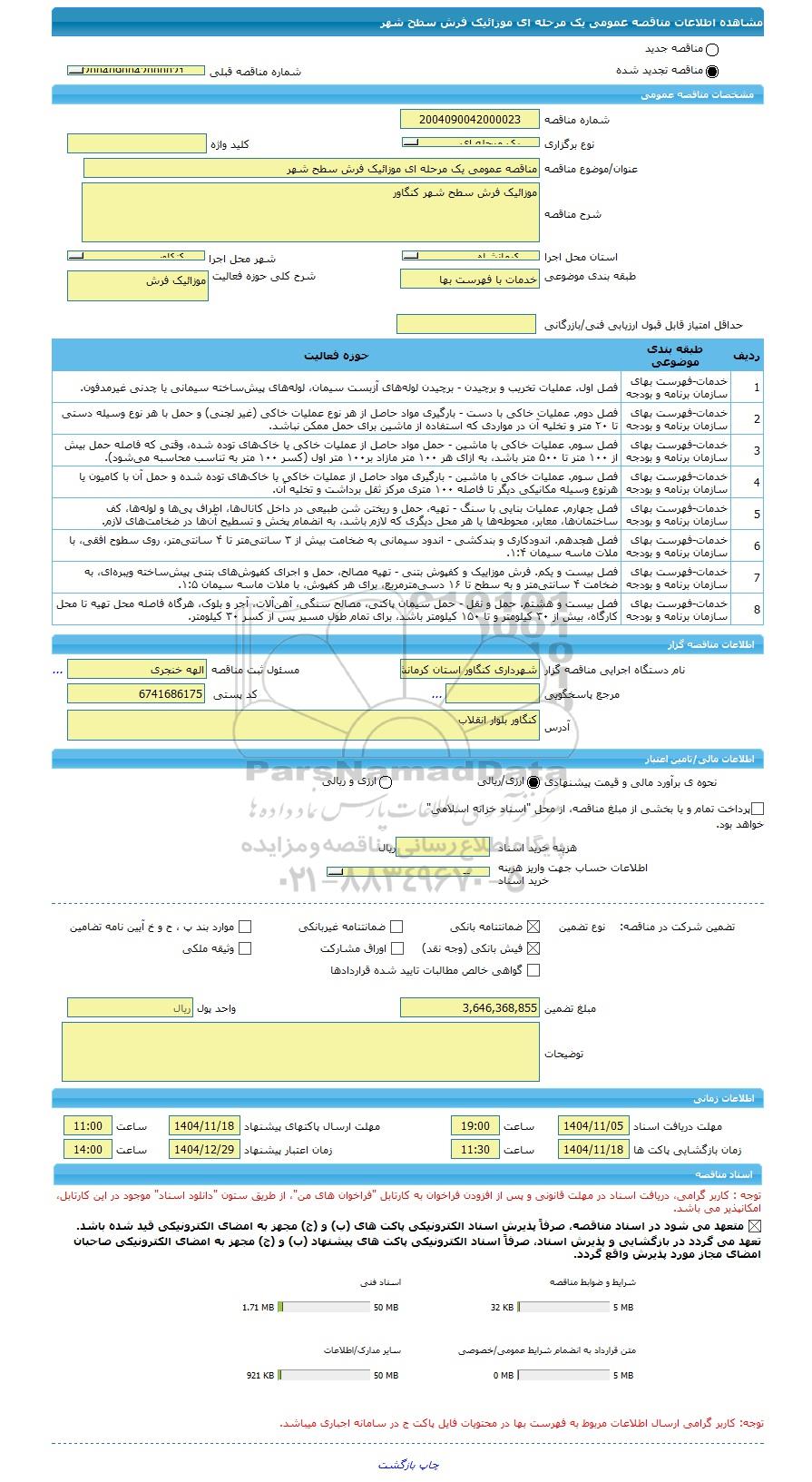 | شماره مناقصه | 2004090042000023 | |||||||||||||||||||||||||||||