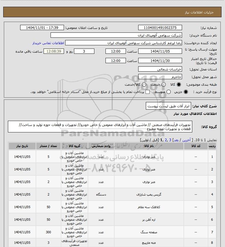 شرح کلی نیاز: ابزار آلات طبق لیست پیوست
