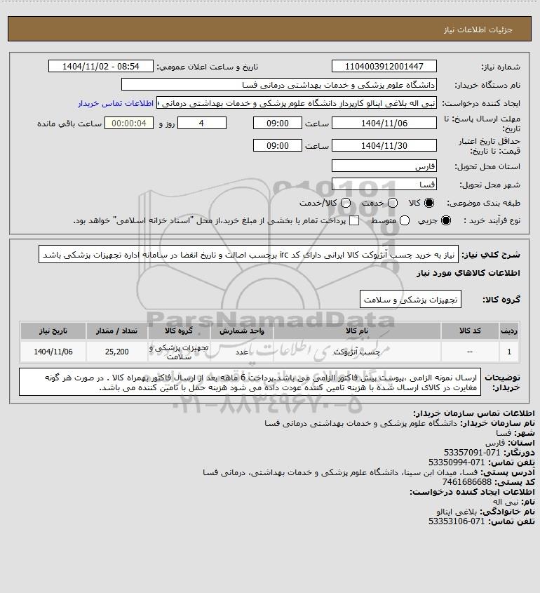 نام دستگاه خریدار:دانشگاه علوم پزشکی و خدمات بهداشتی درمانی فسا