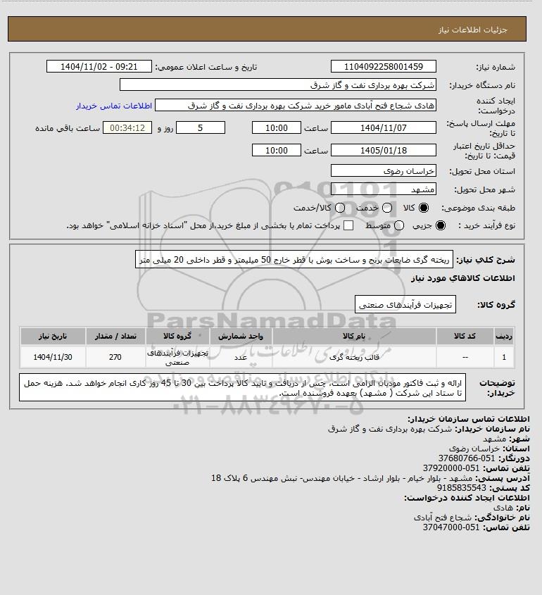 نام سازمان خریدار: شرکت بهره برداری نفت و گاز شرق