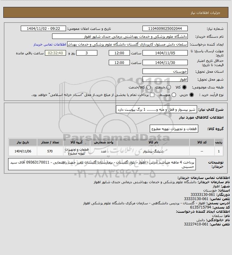نام دستگاه خریدار:دانشگاه علوم پزشکی و خدمات بهداشتی درمانی جندی شاپور اهواز