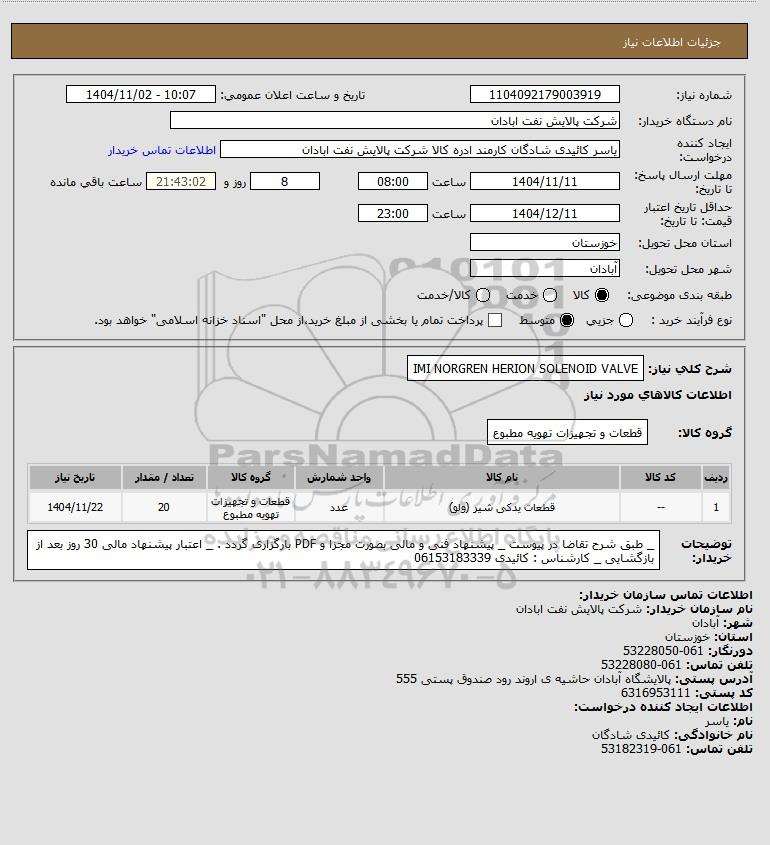 شرح کلی نیاز: IMI NORGREN HERION SOLENOID VALVE