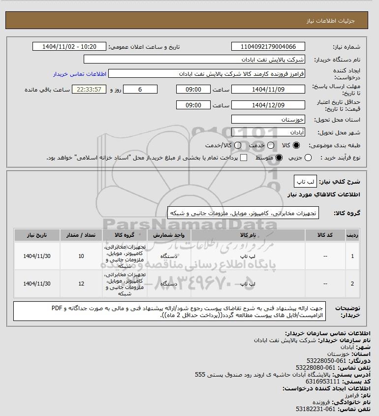 2 -- لپ تاپ دستگاه تجهیزات مخابراتی، کامپیوتر، موبایل، ملزومات جانبی و شبکه 12 1404/11/30