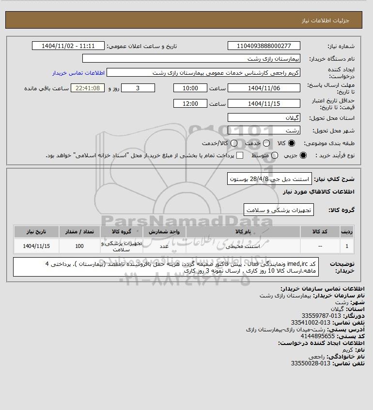 | 1 | -- | استنت محیطی | عدد | تجهیزات پزشکی و سلامت | 100 | 1404/11/15 |