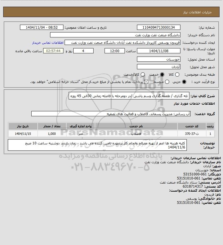 شرح کلی نیاز: تله گذاری / طعمه گذاری وسم پاشی /در دومرحله با فاصله زمانی 30الی 45 روزه