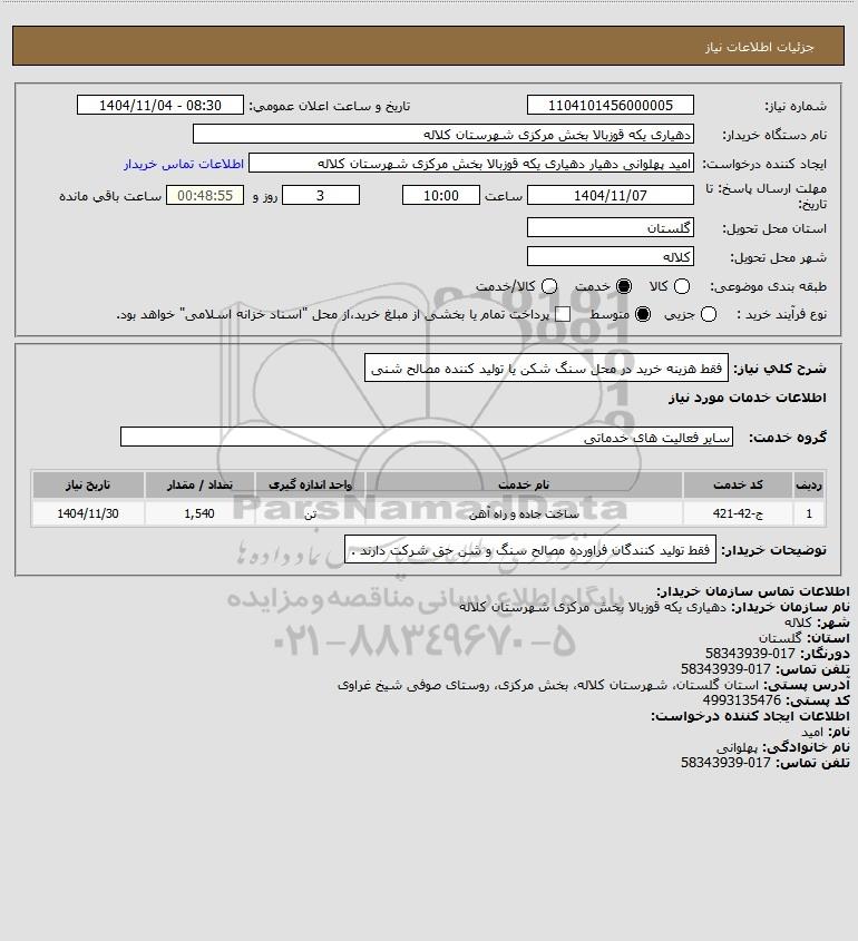 شرح کلی نیاز: فقط هزینه خرید در محل سنگ شکن یا تولید کننده مصالح شنی