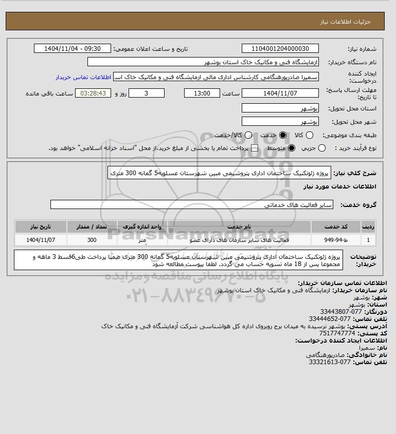 نام سازمان خریدار: ازمایشگاه فنی و مکانیک خاک استان بوشهر