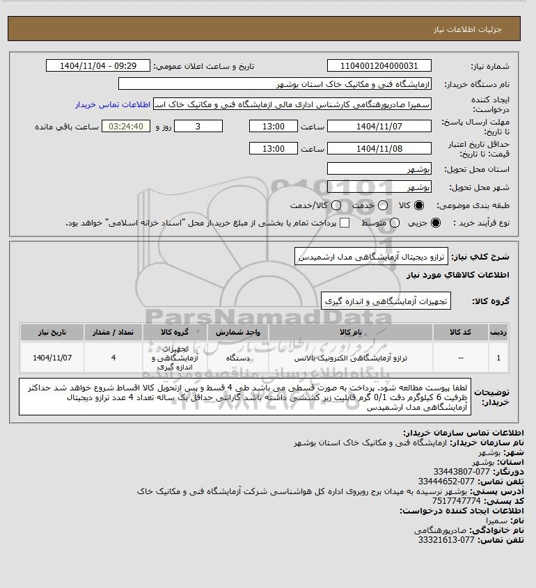 نام دستگاه خریدار:ازمایشگاه فنی و مکانیک خاک استان بوشهر