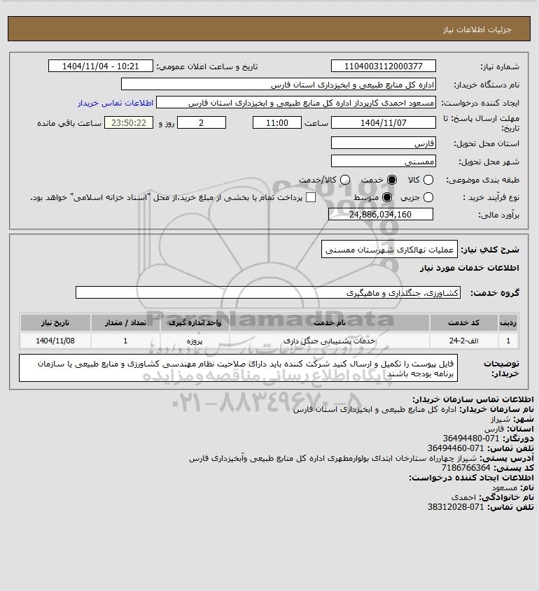شرح کلی نیاز: عملیات نهالکاری شهرستان ممسنی
