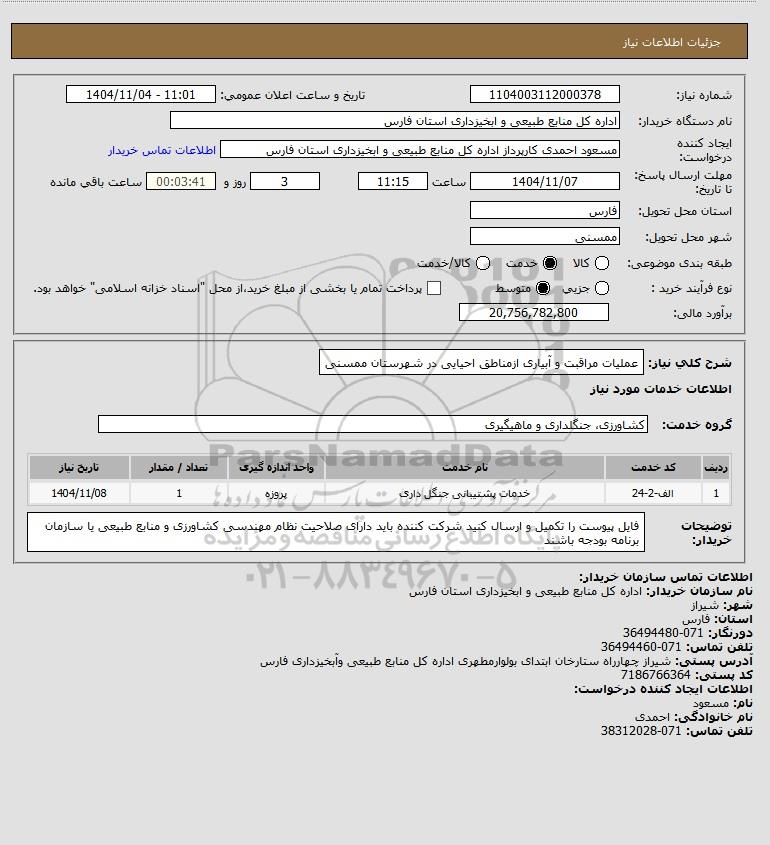 استعلام عملیات مراقبت و آبیاری ازمناطق احیایی در شهرستان ممسنی, استعلام عملیات مراقبت و آبیاری ازمناطق احیایی در شهرستان ممسنی