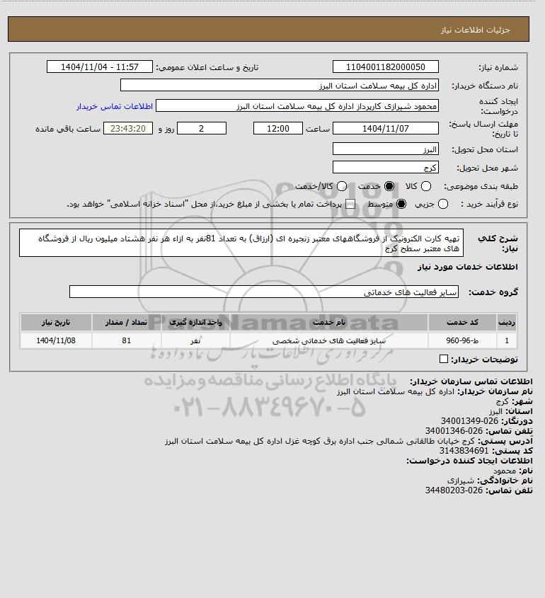 نام دستگاه خریدار:اداره کل بیمه سلامت استان البرز