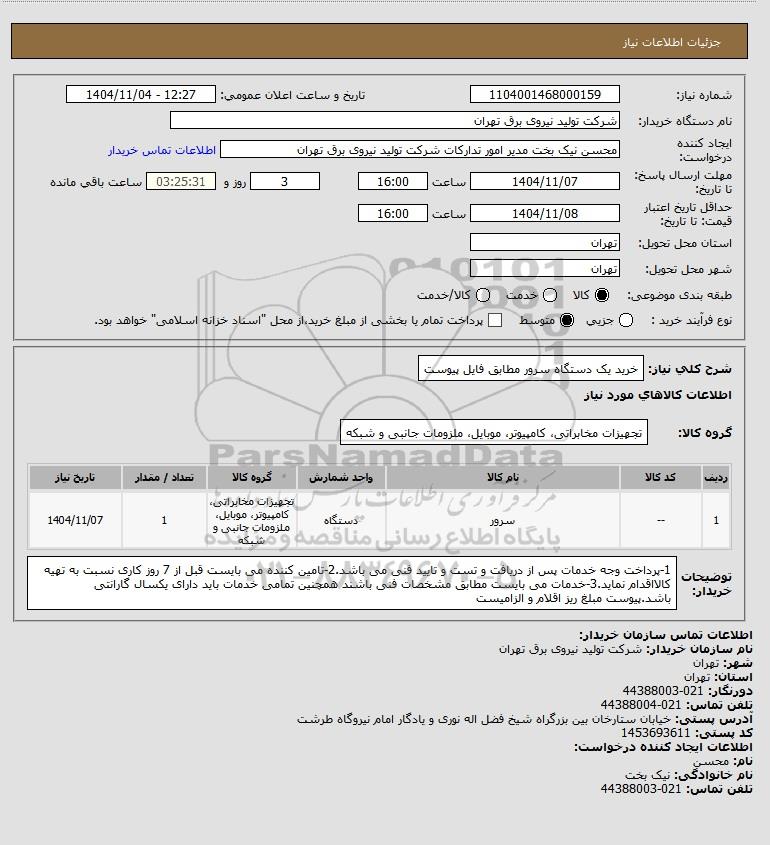 نام دستگاه خریدار:شرکت تولید نیروی برق تهران