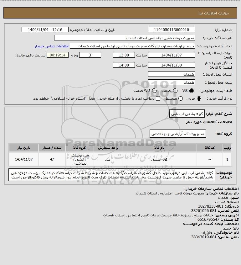 نام سازمان خریدار: مدیریت درمان تامین اجتماعی استان همدان