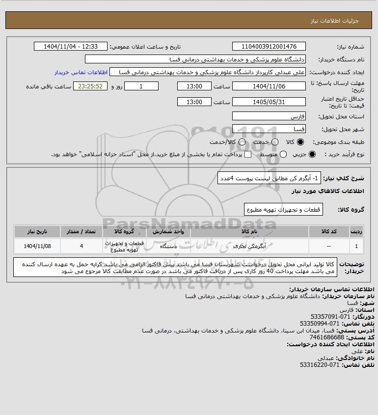 شرح کلی نیاز: 1- آبگرم کن مطابق لیست پیوست 4عدد