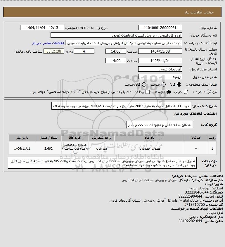 نام دستگاه خریدار:اداره کل اموزش و پرورش استان اذربایجان غربی