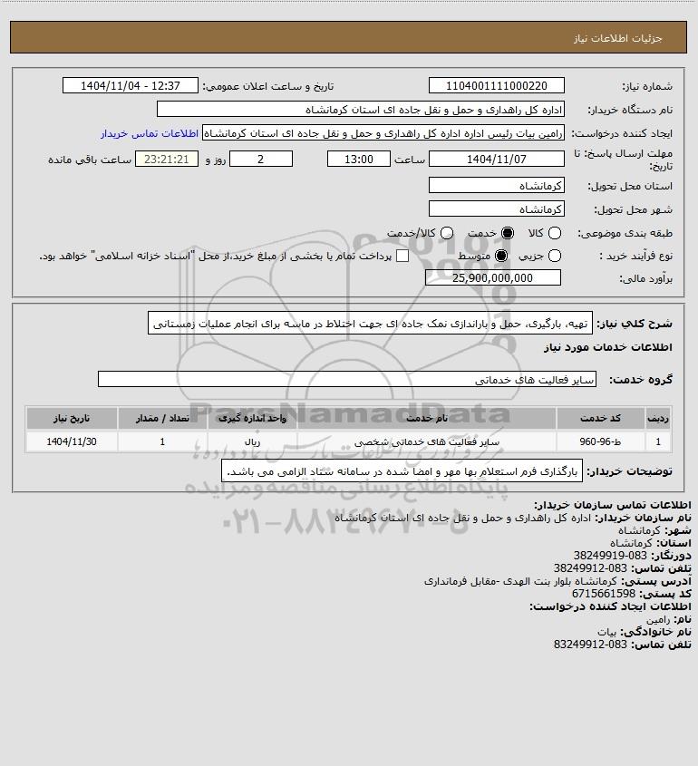 نام دستگاه خریدار:اداره کل راهداری و حمل و نقل جاده ای استان کرمانشاه